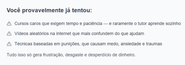 Você aplica um método simples e testado por milhares de pessoas com resultados reais — e finalmente tem o cachorro que sempre quis.